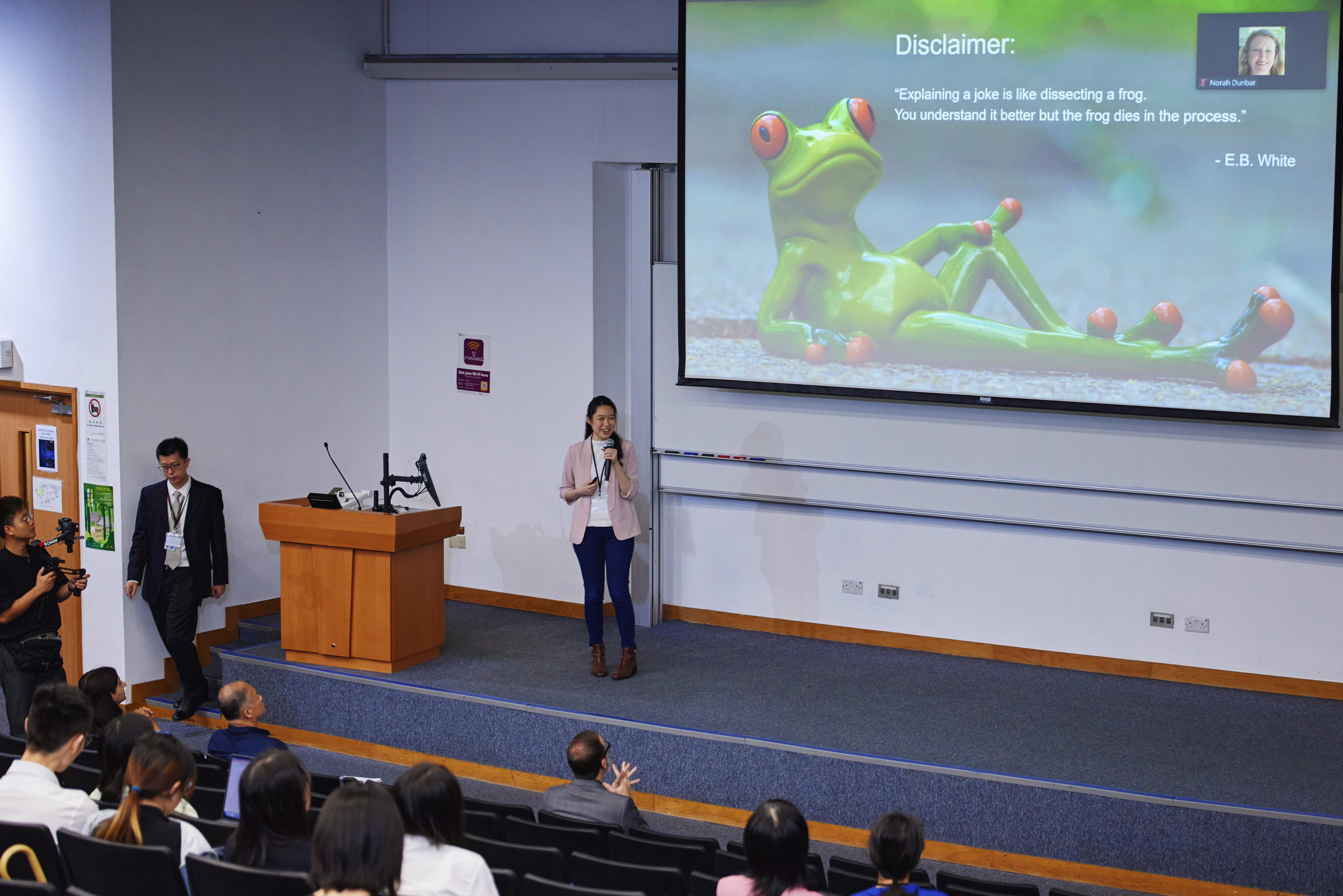 CUHK hosted the 1st International Symposium on Humour Pedagogical Approaches on 24 May at the Esther Lee Building. Jointly organised by the Chinese University of Hong Kong, City University of Hong Kong, Hong Kong Baptist University, the Hong Kong Polytechnic University, and the University of Hong Kong, approximately 100 participants joined face-to-face and on Zoom.