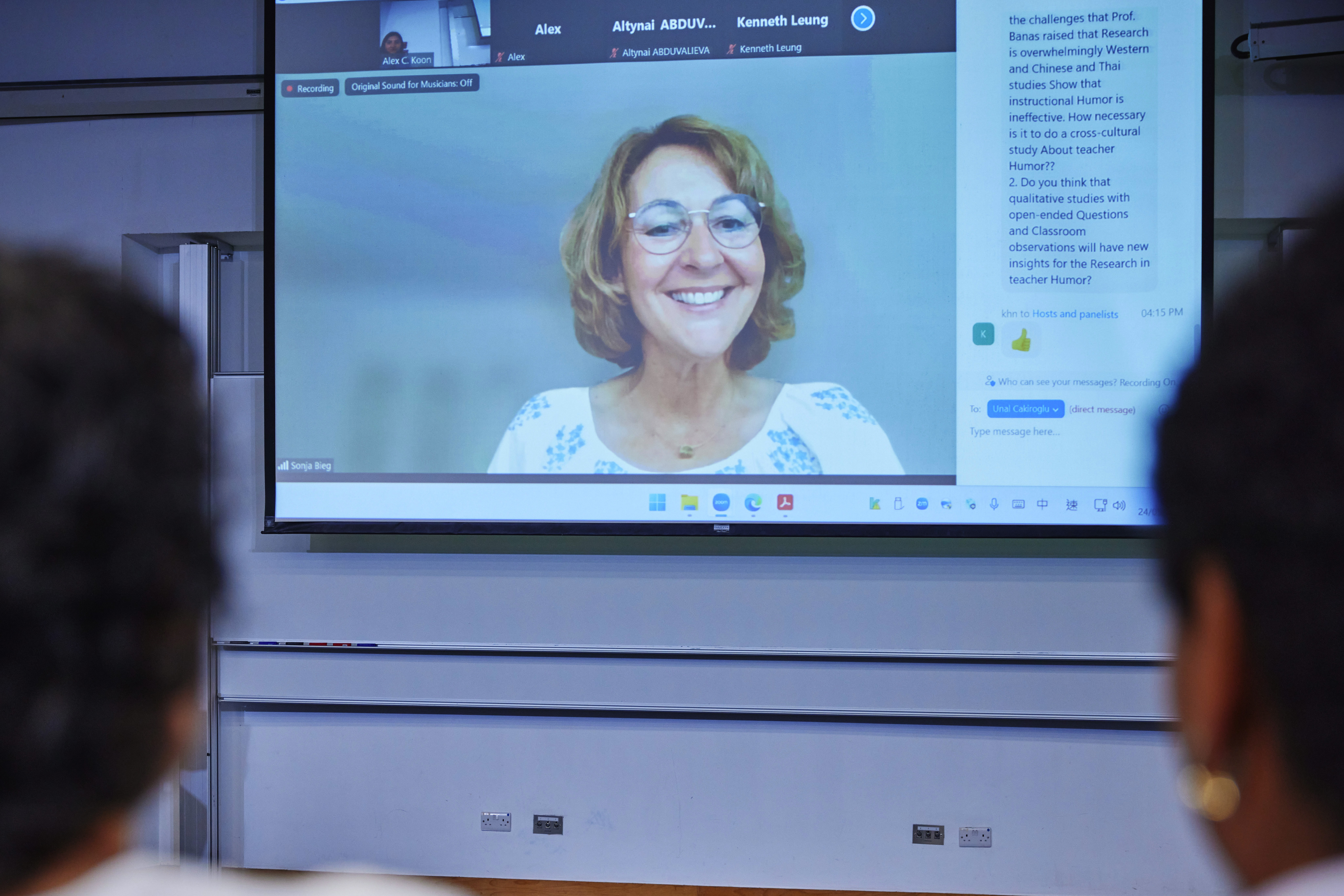 CUHK hosted the 1st International Symposium on Humour Pedagogical Approaches on 24 May at the Esther Lee Building. Jointly organised by the Chinese University of Hong Kong, City University of Hong Kong, Hong Kong Baptist University, the Hong Kong Polytechnic University, and the University of Hong Kong, approximately 100 participants joined face-to-face and on Zoom.